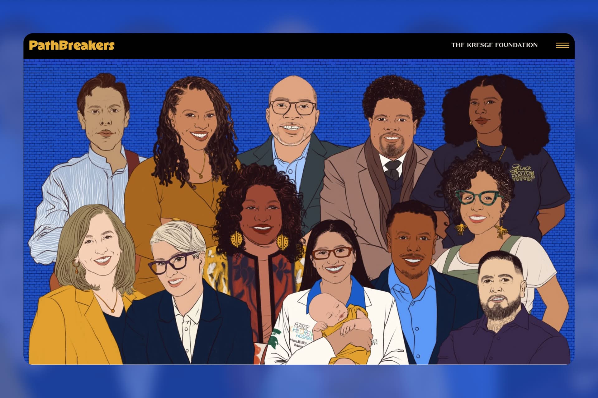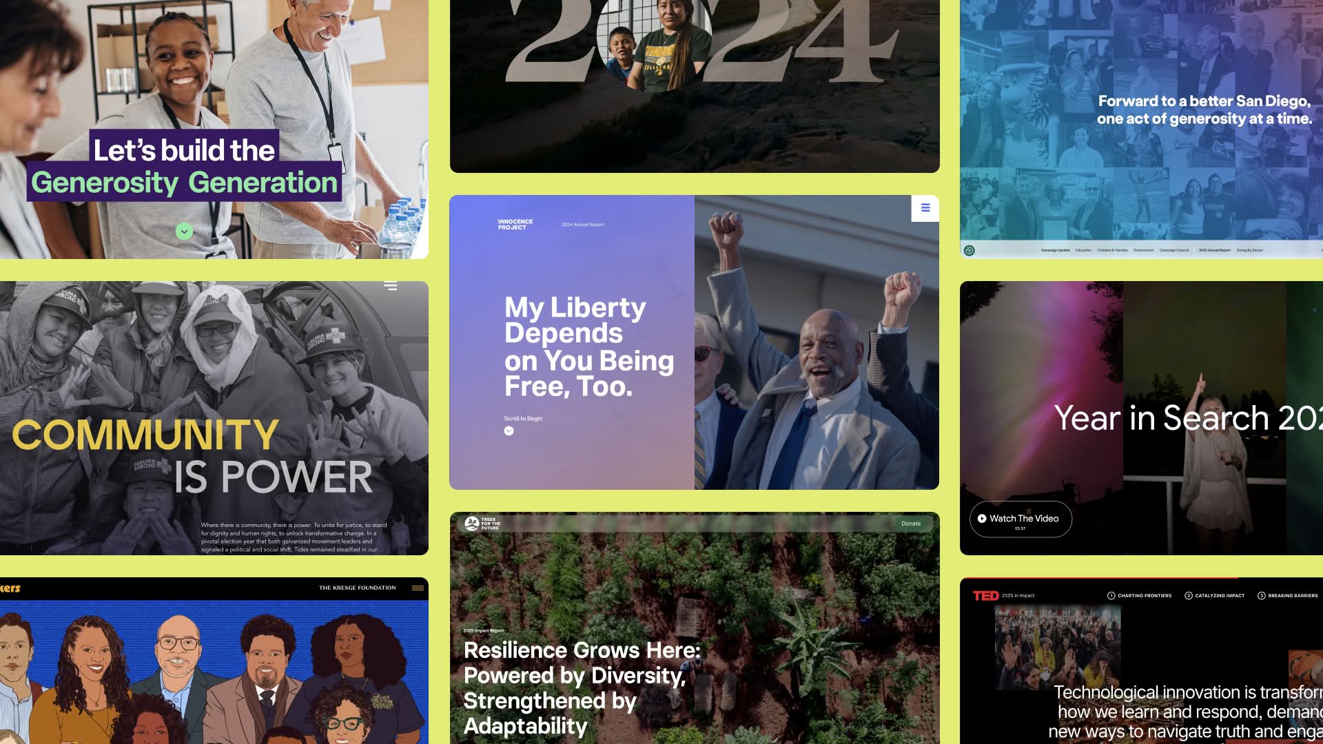 Kresge’s Pathbreakers report flips the traditional annual report model by centering leaders instead of the institution. Profiles combine photography, written stories, and podcasts to offer multiple entry points. The foundation’s impact is implied through the people it supports rather than spelled out through programs. The result feels more like a storytelling platform than a report.